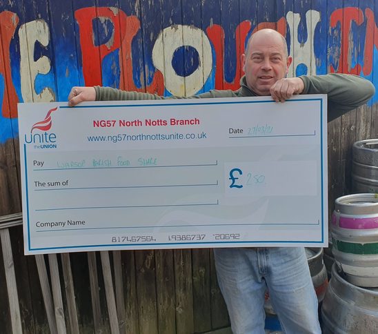 During this year we have donated money to numerous local good causes from food banks, as pictured below. Some of these include Warsop Food Share, Bassetlaw Foodbank, Clipstone Garra Foodbank, Ollerton CAR Project. We have also supported many national and international charities including Palestine Solidarity Campaign, Medical Aid for Palestine, Justice for Columbia, Nicaragua Solidarity Campaign, Cuba Solidarity Campaign, RNLI. We have supported Nottinghamshire Mining museum Nottinghamshire Mining Museum .Also in our 2021 year review we have also sponsored Shirebrook Cricket Club for the 2021 season, we have sponsored an advert on Bowe Radio. We have purchased law at work books for the 11 biggest employers in the branch. We have also supported other branches with in the union who have been carrying out industrial action throughout the year these include Weetabix and British Airways. Anyone who would like to take part in branch meetings should email NorthNottsUniteNG57@outlook.com or check out https://www.ng57northnottsunite.co.uk for information on branch meetings. During the year we have had two new workplaces come into our branch NSK Bearings and Sports Direct, so would like to welcome all these people into our branch. We have been working hard to make contact with members who work at either of the above two workplaces to see if we can assist them in any way.